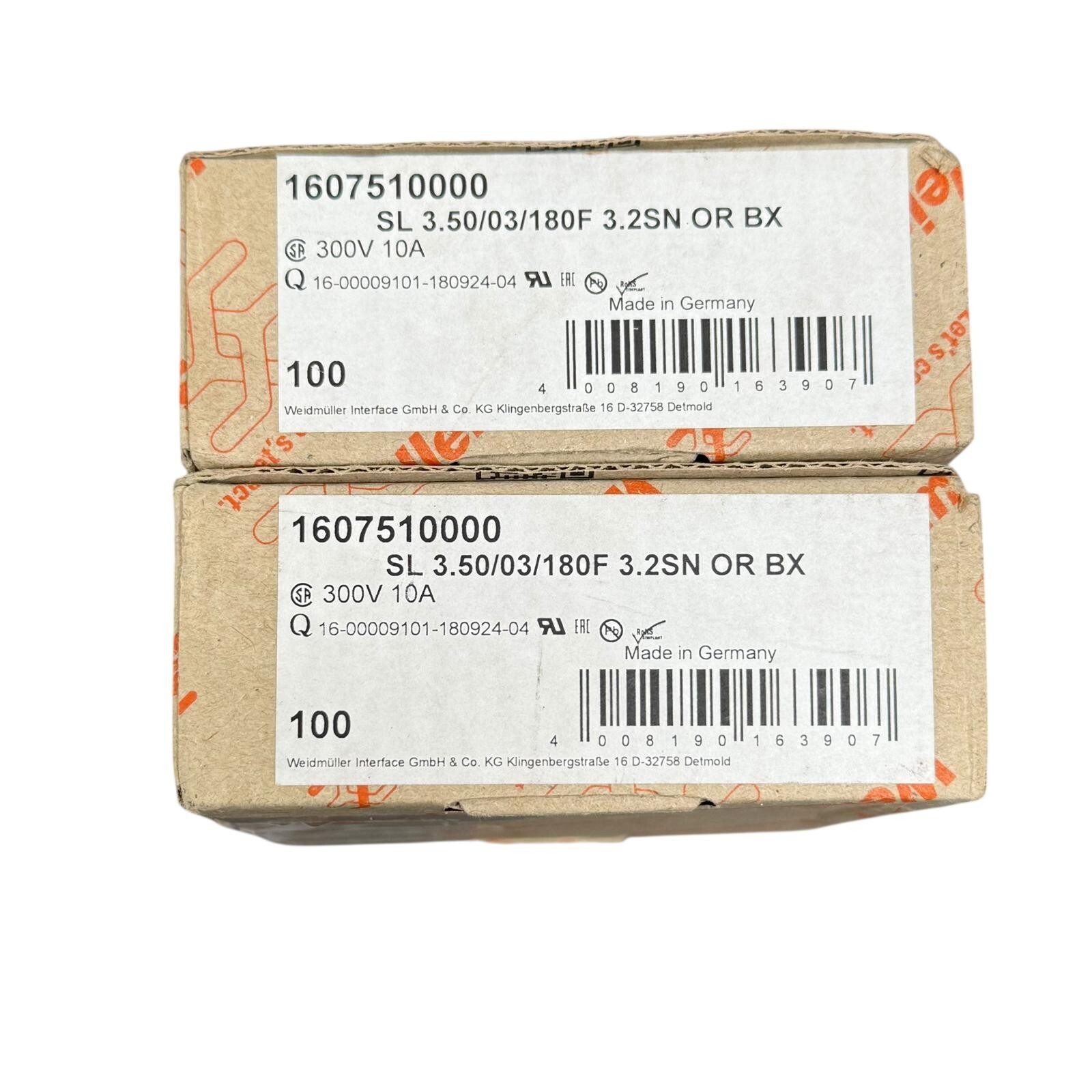 [180 PCS] 1607510000 Weidmüller 3 Position Terminal Block 300V 10A[180 PCS] 1607510000 Weidmüller 3 Position Terminal Block 300V 10A