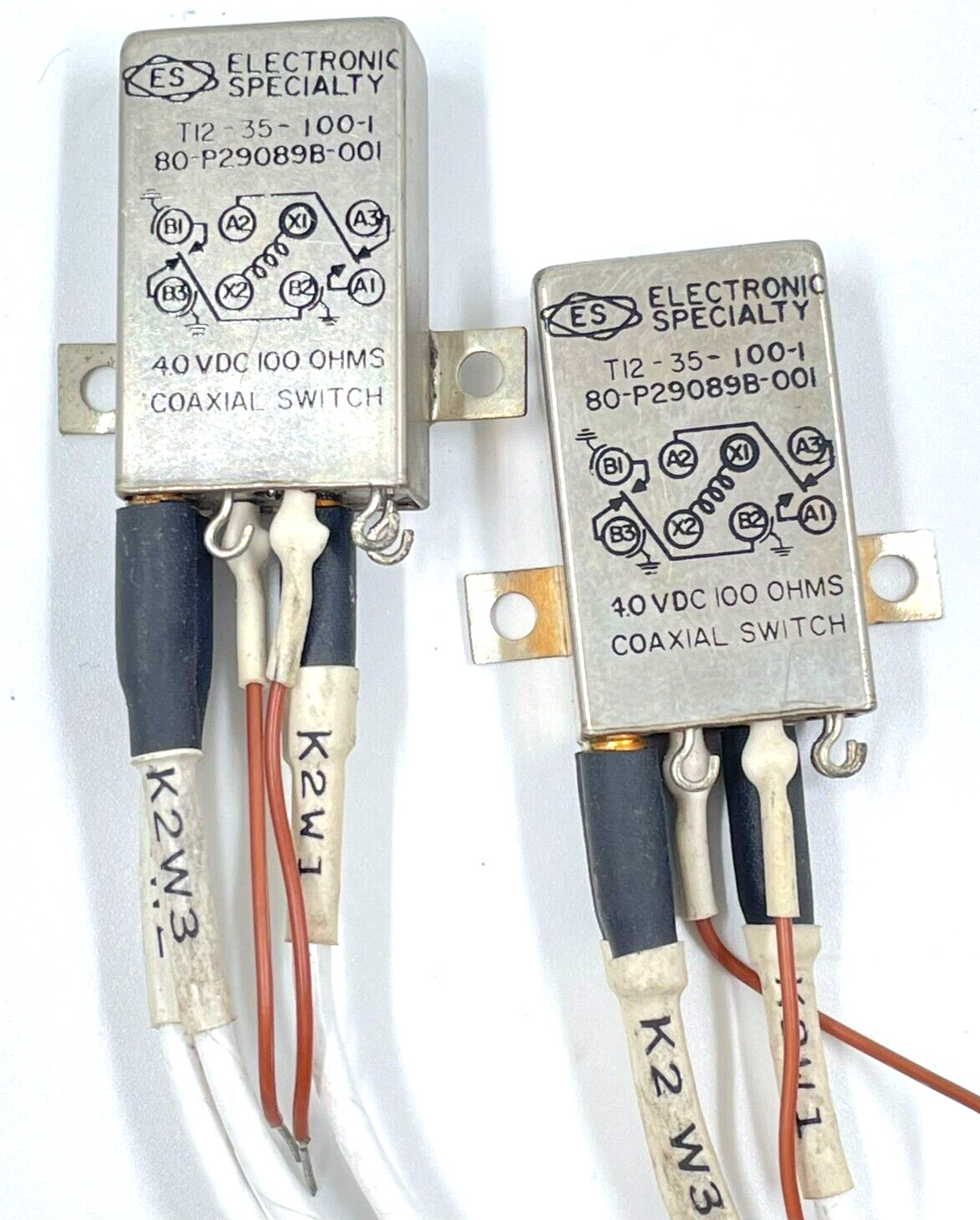 2x Electronic Specialty T12-35-100-1 80-P29089B-001 4.0 VDC 100 OHAM Radio Relay