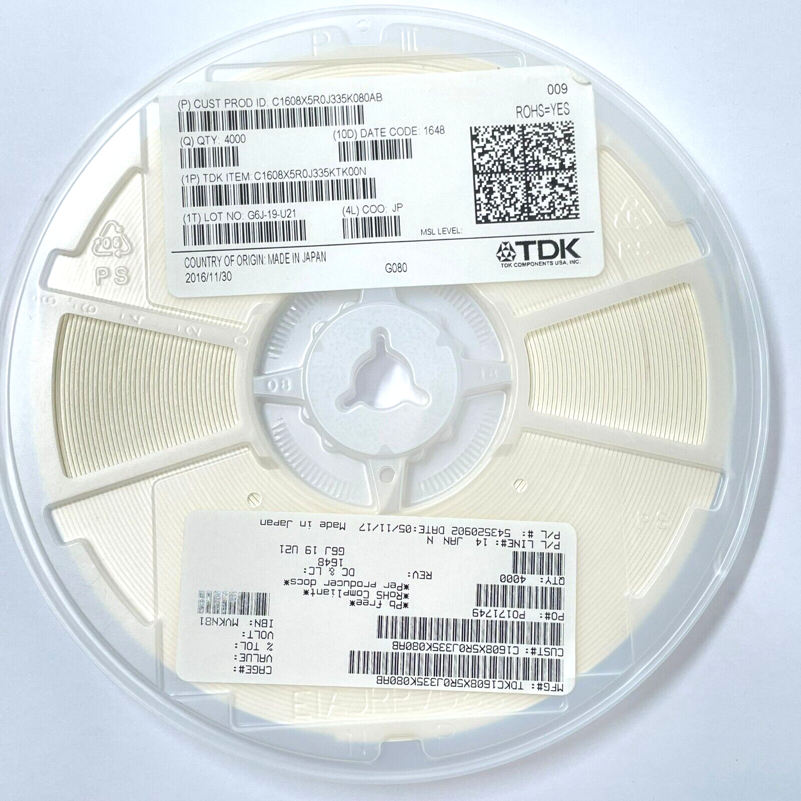 4000PCS – C1608X5R0J335K080AB TDK MLCC – SMD/SMT 3.3 uF 6.3 VDC 1608