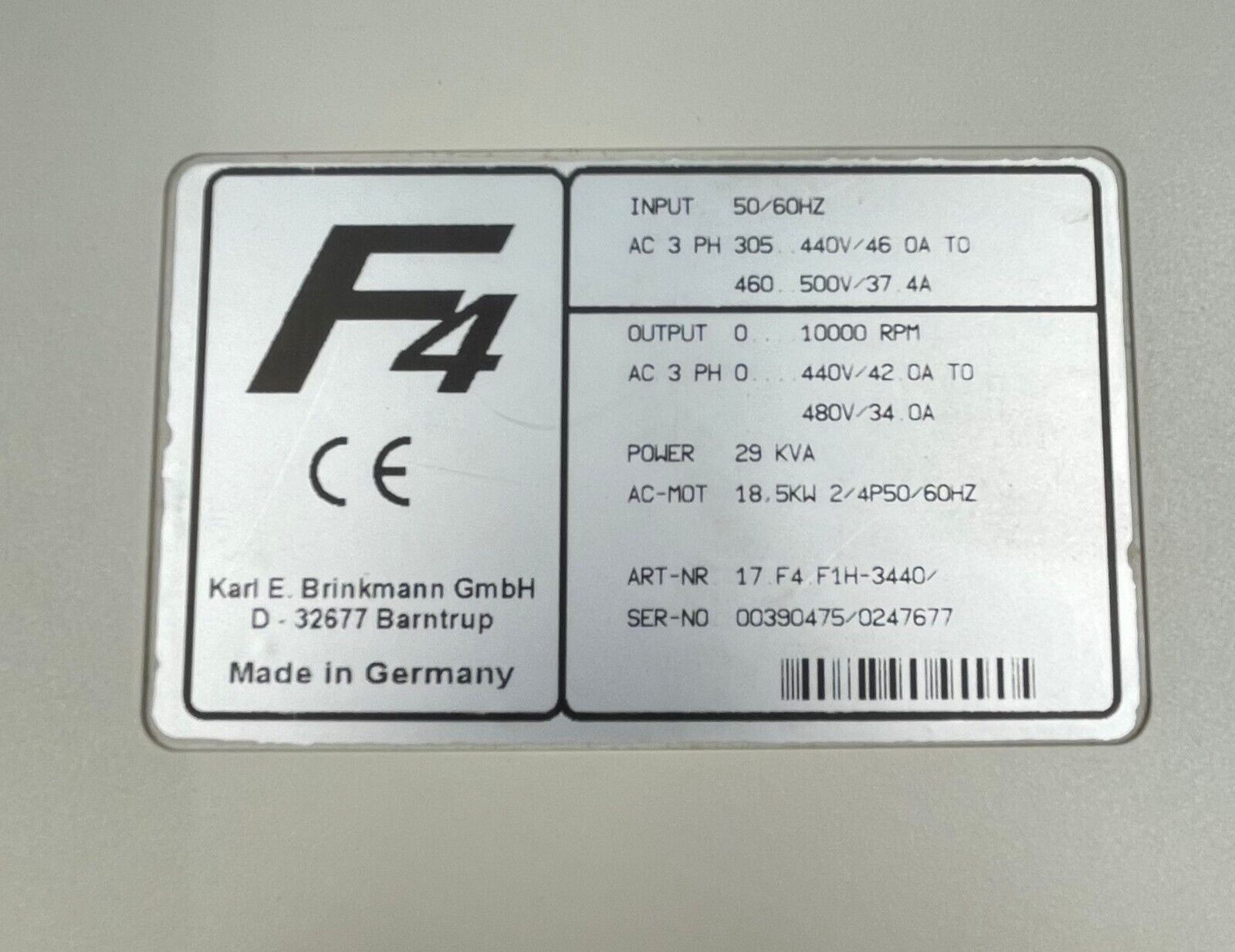 KEB 17.F4.F1H-3440 F4 COMBIVERT DRIVE IN AC 305..440V/46.0A