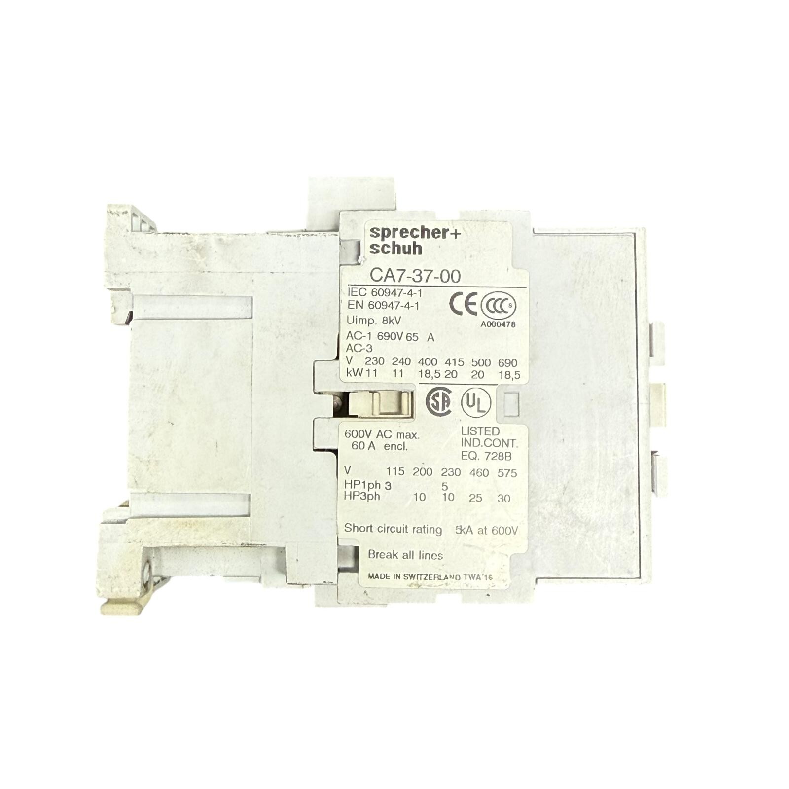 Sprecher Schuh CA7-PA CA7-37 CA7-37-00 Contactor 690V 65A Coil 240V